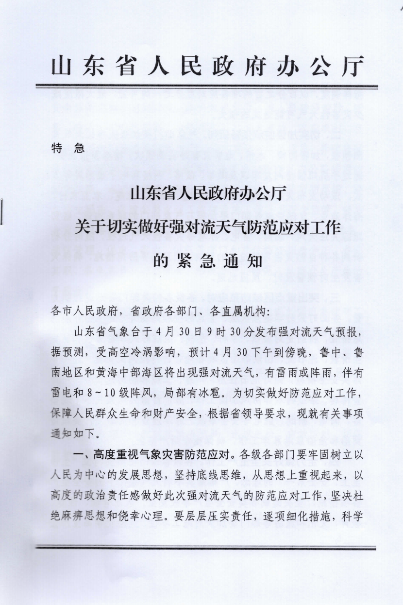 "红桃视频在线" 山东省人民政府办公室关于切实做好强对流天气防范应对工作的紧急通知