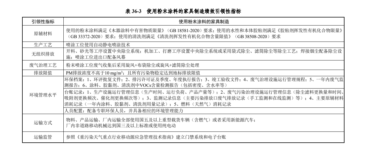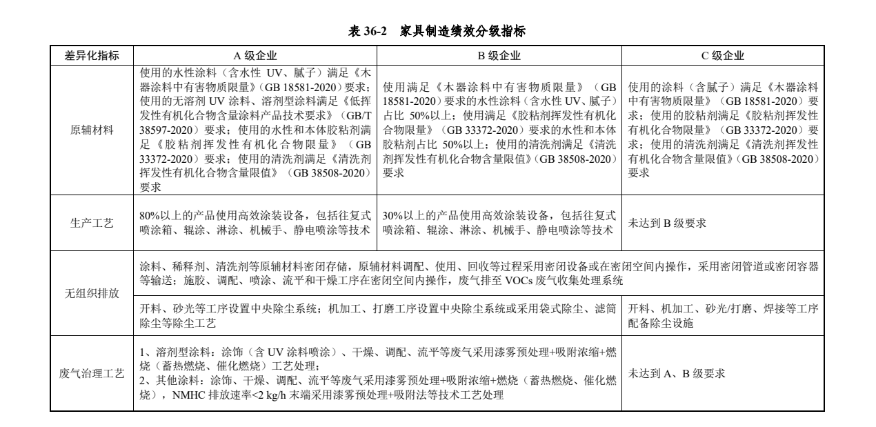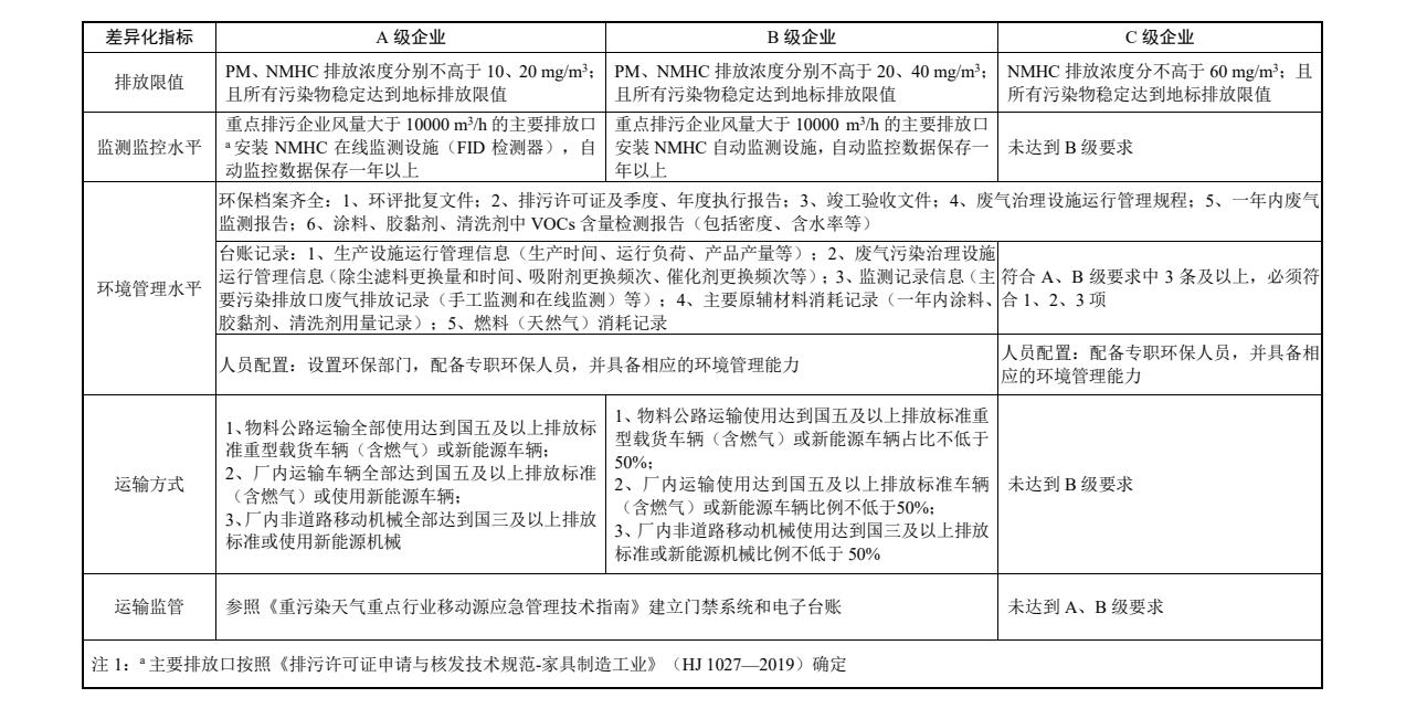 重污染天气家具制造行业绩效分级指标明确