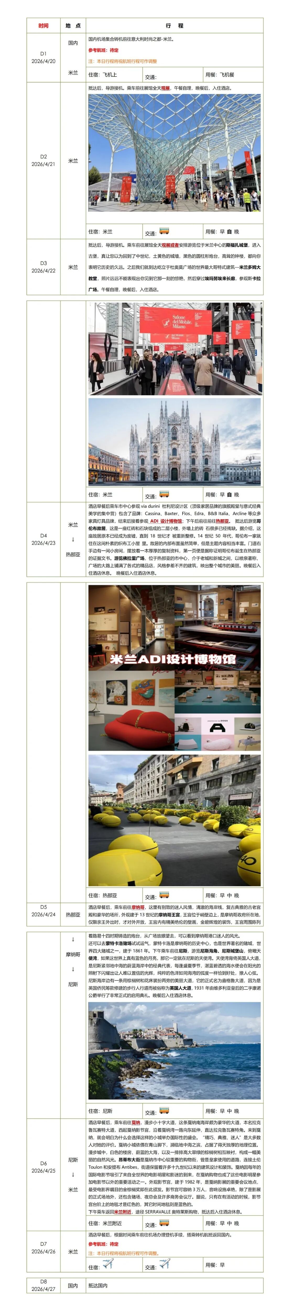 为加强国际交流与合作,帮助会员企业更好地把握市场动态和设计趋势,感受世界前沿的产品设计理念,提升我省家具行业的设计水平和市场竞争力 红桃视频高清,山东省家具协会计划于2026年4月20日-27日组织会员企业参观考察意大利米兰家具展,具体内容通知如下, 。