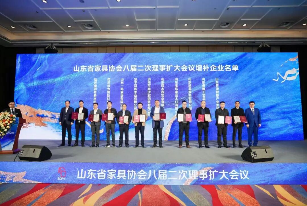 随后,山东省家具协会秘书长王腾宣读增补理事单位名单 红桃视频网站,山东普泽健康产业集团有限公司,山东睿帆工艺品有限公司,山东迪美家具有限公司,山东宝岛家合木门有限公司,山东西木西实业有限公司,济南可尚沙发销售有限公司,邹平双杨木业有限公司,山东一鸣家居有限公司,菏泽狼为图新材料科技有限公司,临沂健康得祥新材料有限公司共 10 家企业入选,山东省家具协会会长/青岛一木集团有限责任公司总裁刘少龙与山东省家具协会轮值会长/山东凤阳家居有限公司董事长邸喜宁为增补企业授牌及证书。