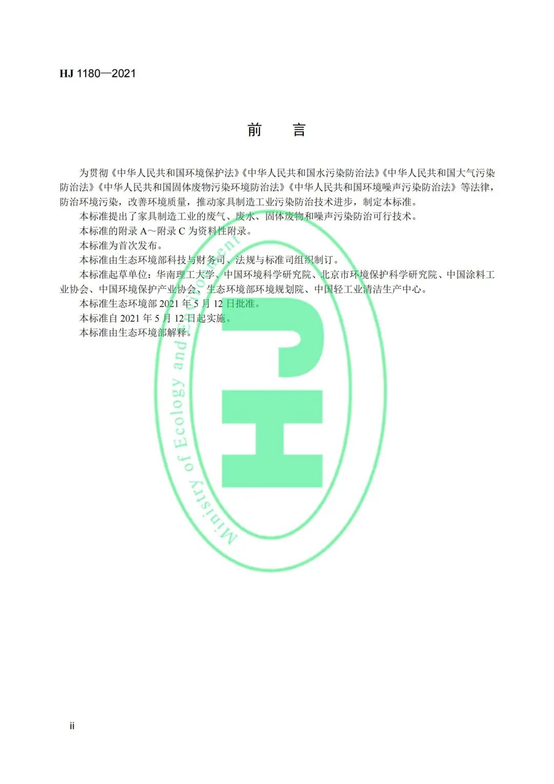 《家具制造业污染防治可行技术指南》(HJ 1180-2021);